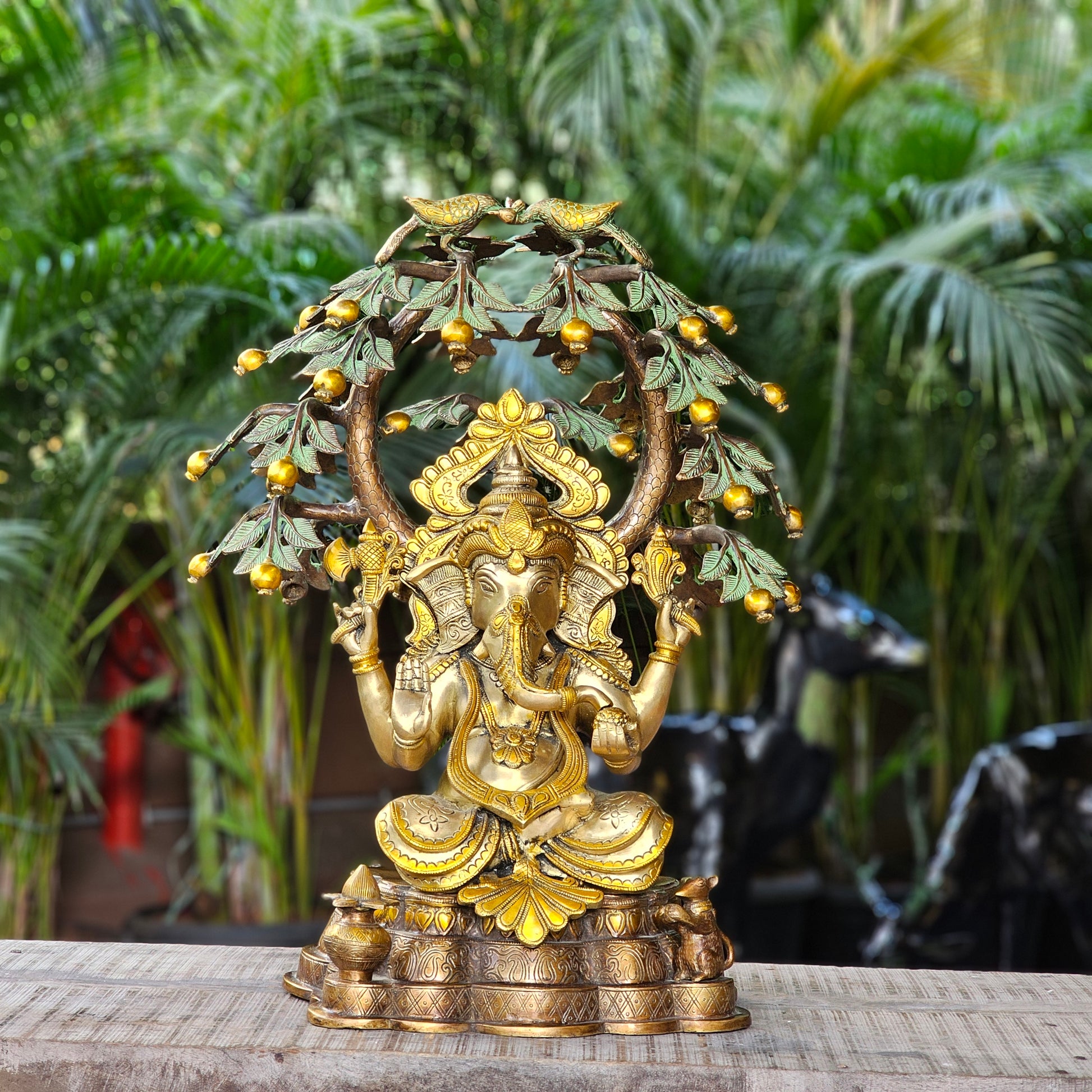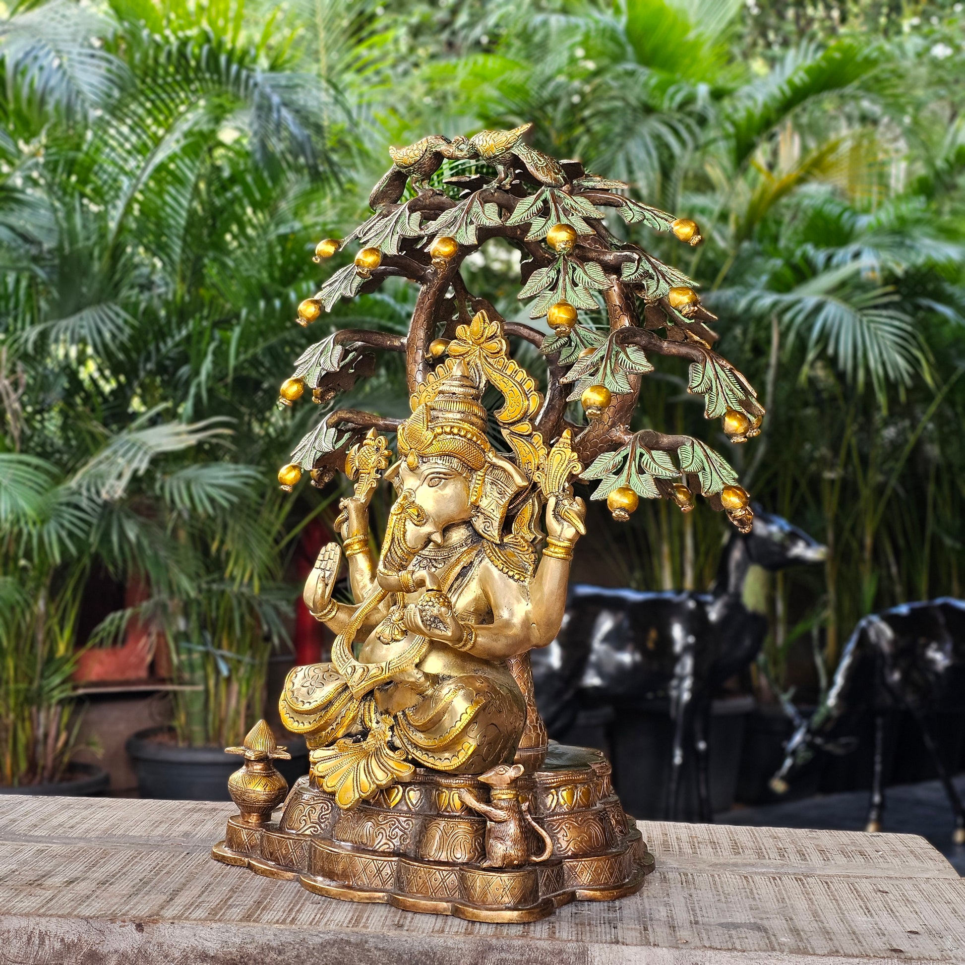 23 Inch Brass Ganesha Idol Sitting Under Tree. Experience the commanding yet compassionate presence of Lord Ganesha with this large