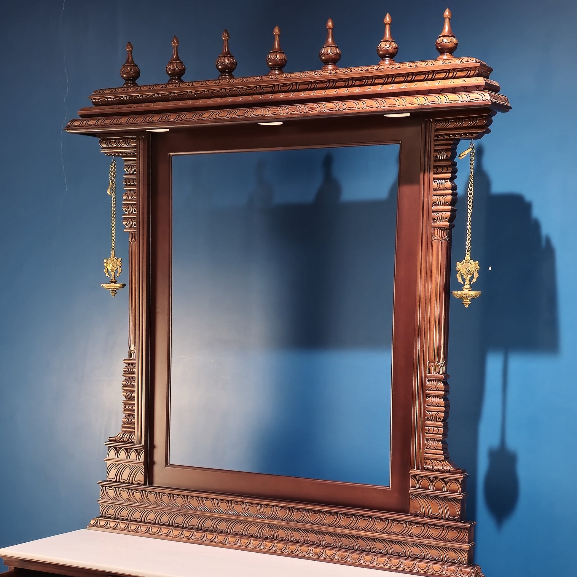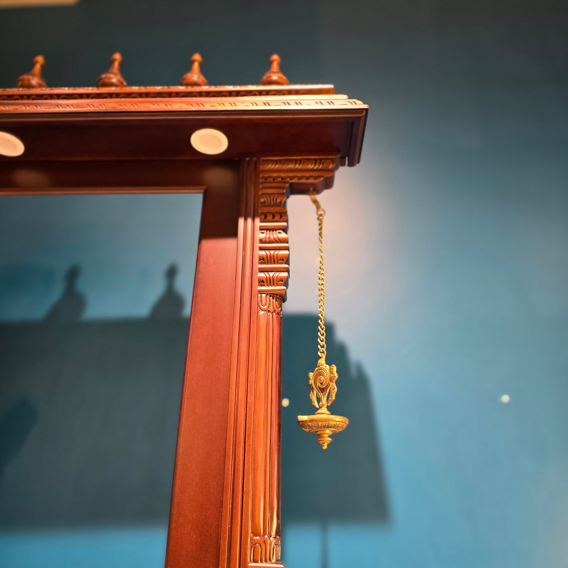• High-quality wood: This Pooja Mandir is crafted Primarily from richly toned premium-grade Teak wood and Engineered Wood where ever required ensuring durability and a luxurious appearance. Teak wood adds warmth, natural beauty, and longevity.