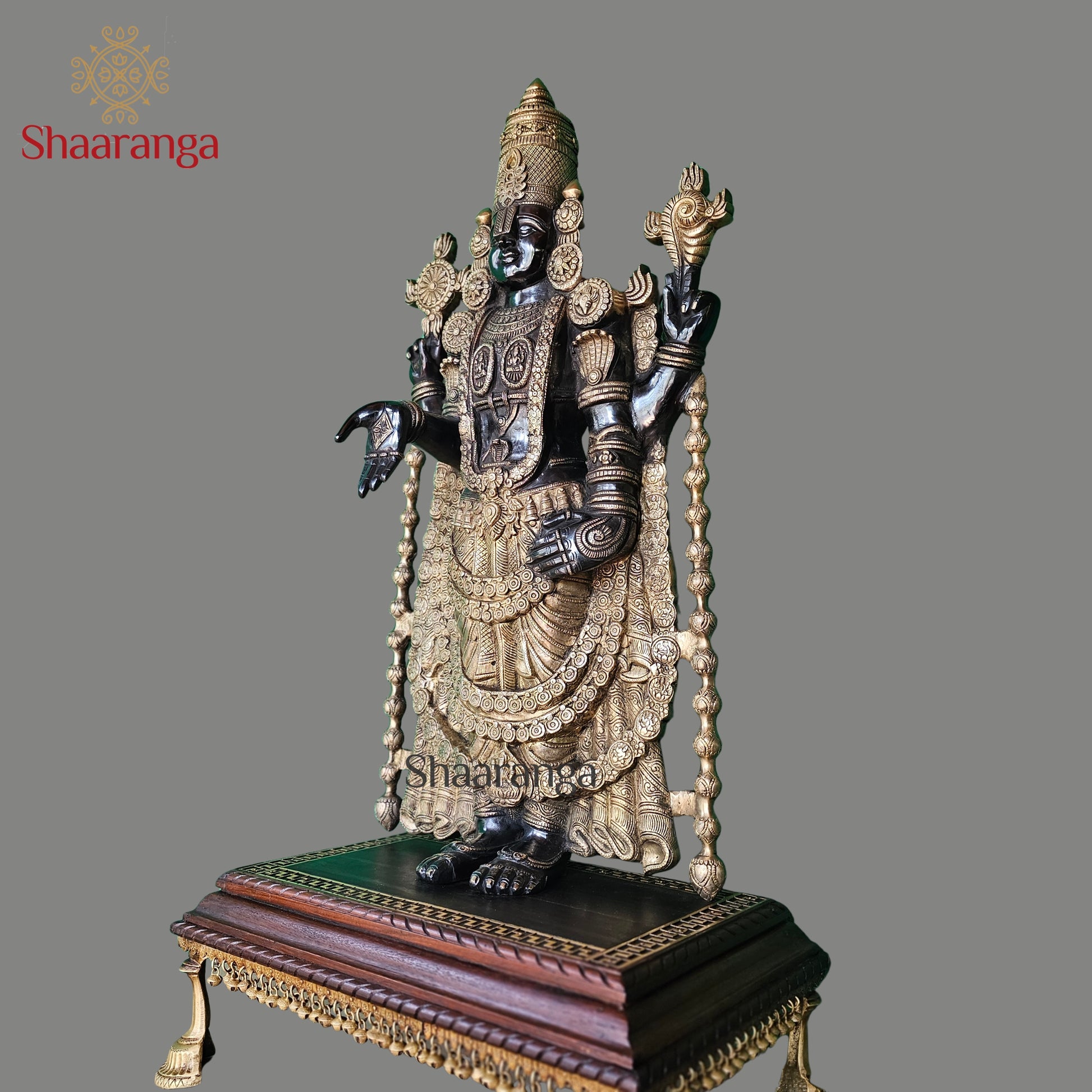 Crafted with extraordinary precision, the idol reflects the majestic presence of Lord Venkateshwara of Tirumala, where the Lord is worshipped as the eternal protector of Dharma and the compassionate granter of prosperity and peace.