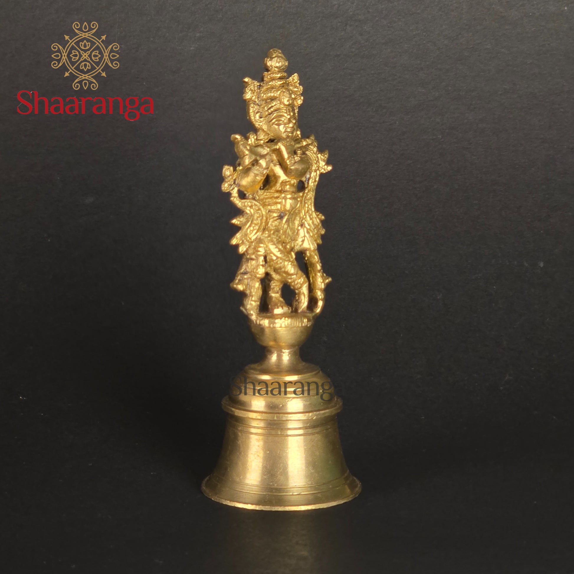 The 5.5 Inches Brass Krishna Pooja Bell is a finely crafted devotional instrument designed to enrich daily worship with sacred sound and divine presence. Cast in premium-quality brass, this elegant bell is crowned with a beautifully sculpted form of Lord Krishna, symbolising divine love, harmony, and spiritual joy.