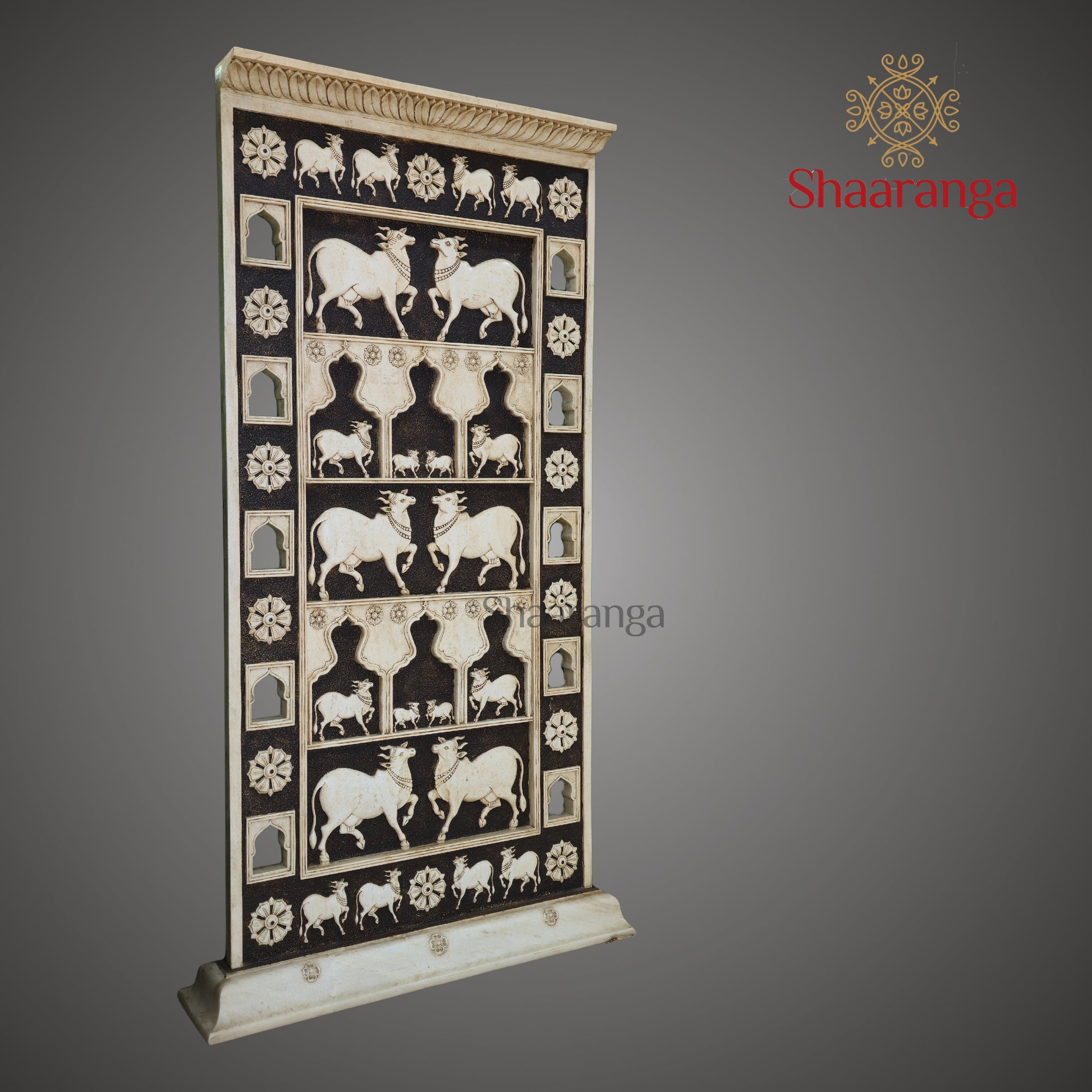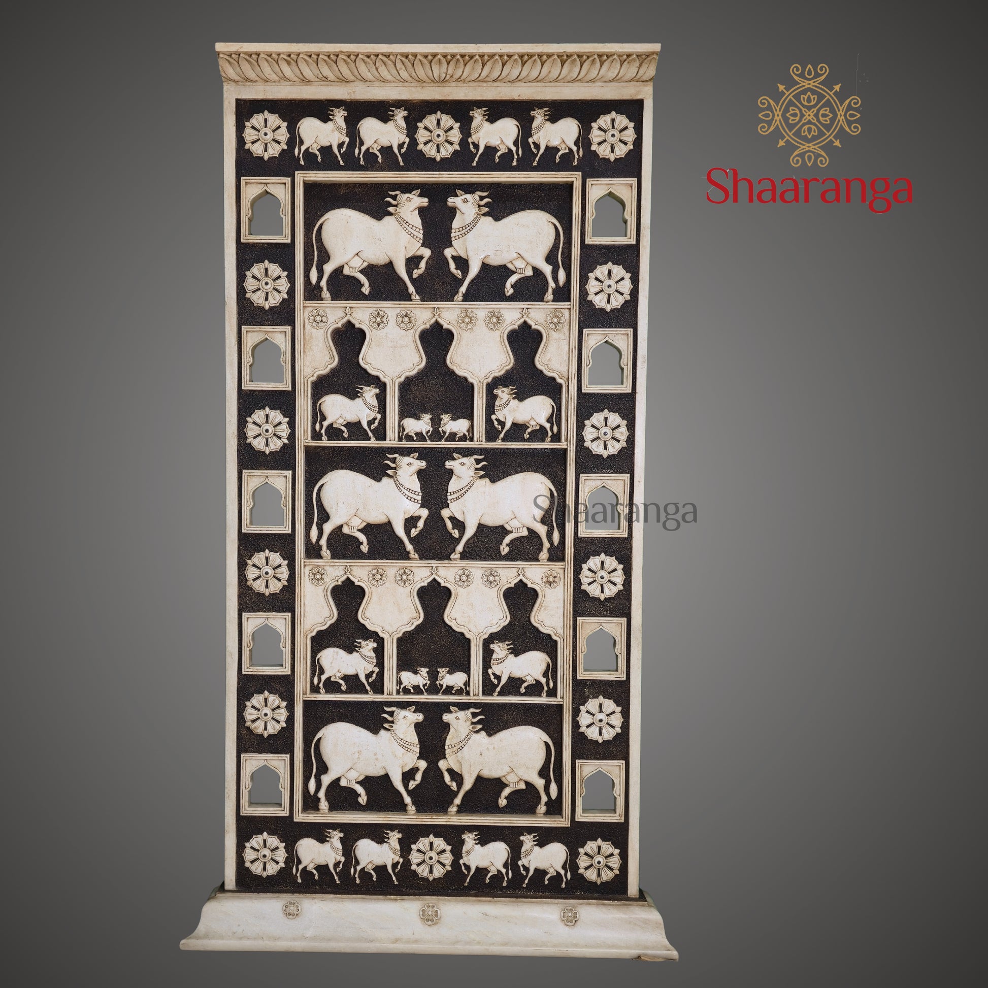 76 Inches Marble Cow Panel – A Grand Expression of Sacred Elegance