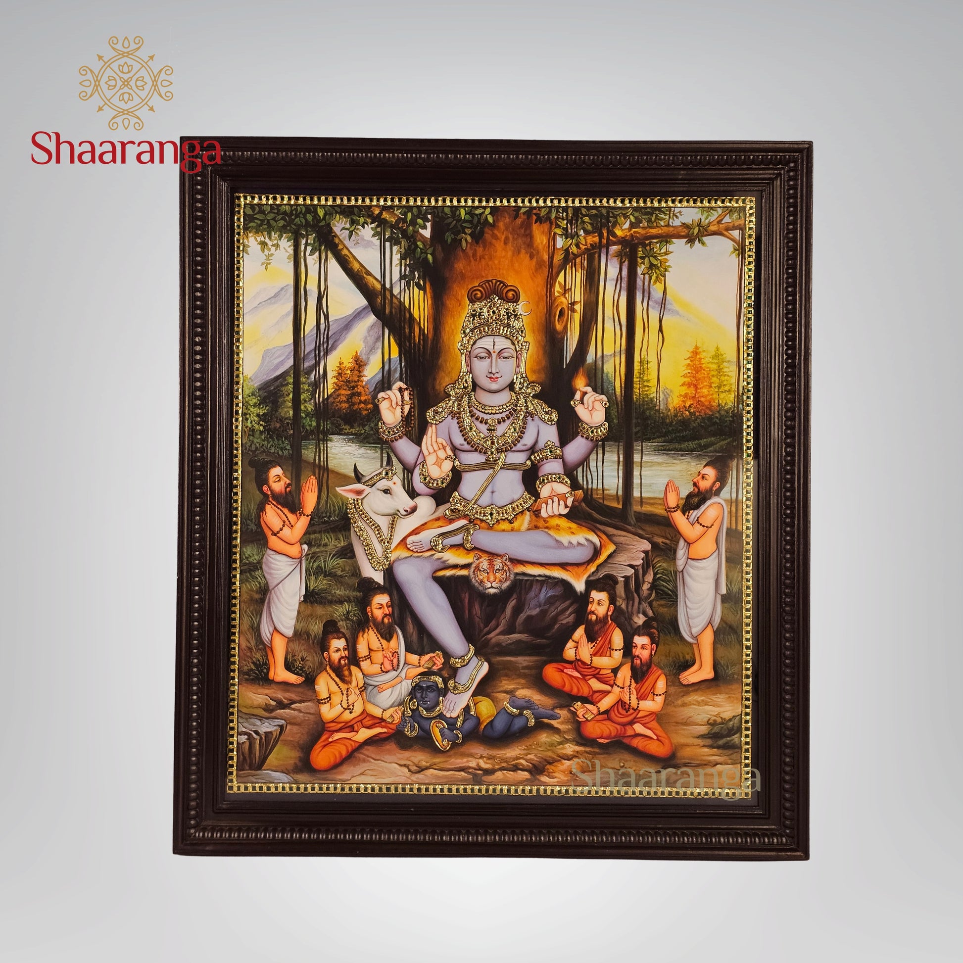 Large Dakshina Murthy paintings like this are highly revered for study rooms, meditation spaces, spiritual institutions, and homes seeking divine guidance and wisdom. In Sanatana Dharma, Dakshina Murthy represents the ultimate teacher — the source of all knowledge, philosophy, music, yoga, and scriptures.